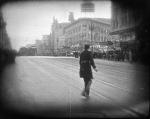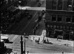 - Turning of Market Street near 6th or 7th street, with streetcar passengers watching the filming.