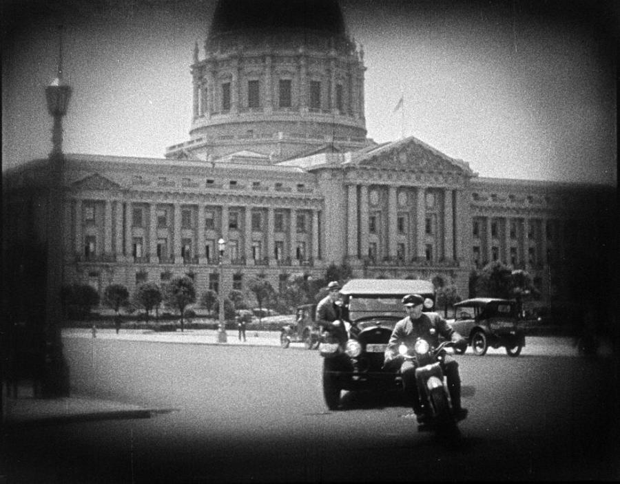 Turning off of Grove street onto Larkin street, infront of San Francisco City Hall.