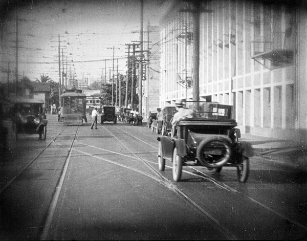 The Los Angeles streetcar leaves little doubt where this shot was photographed.